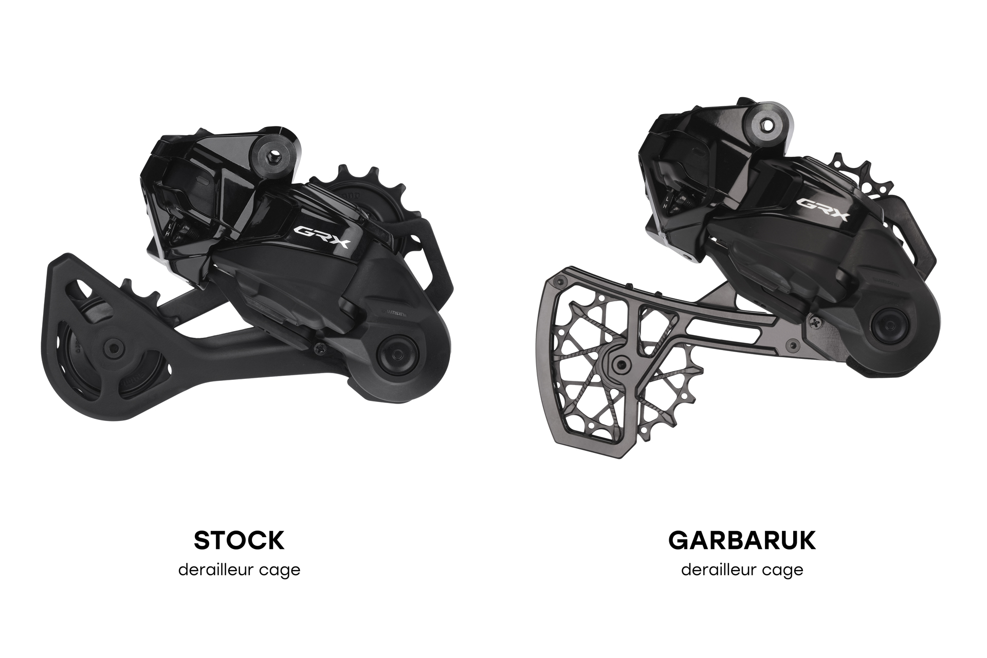 Compatible with stock pulley wheels or optional Garbaruk 14T+16T pulley wheels for sram